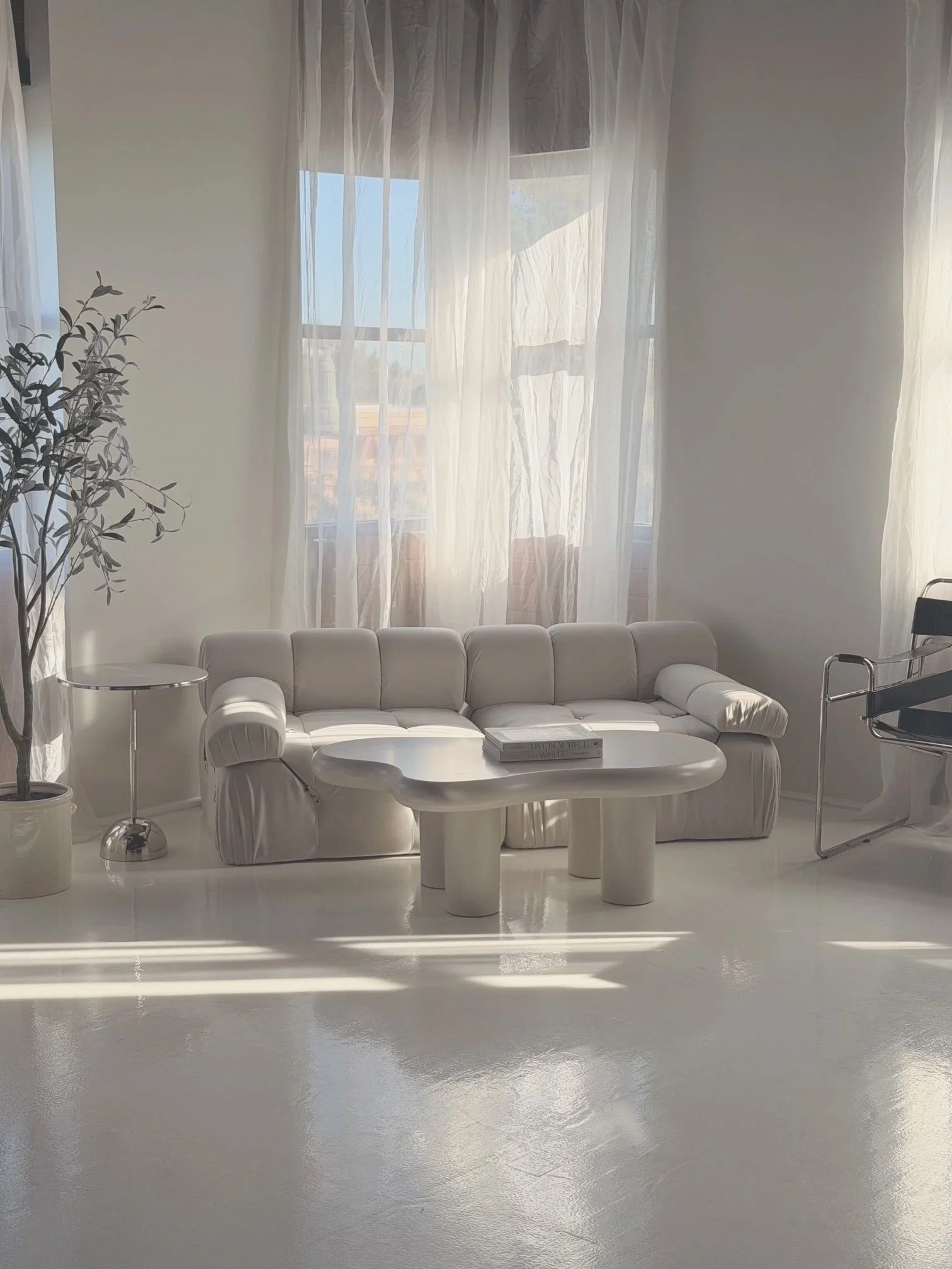 When you book the studio you are getting the entire 1600 sq feet space to yourself. We have a variety of backdrops, props, lighting, fabrics, c stands, and furniture that you can use. There is 12 windows that surround the studio so lots of beautiful light all day long.
